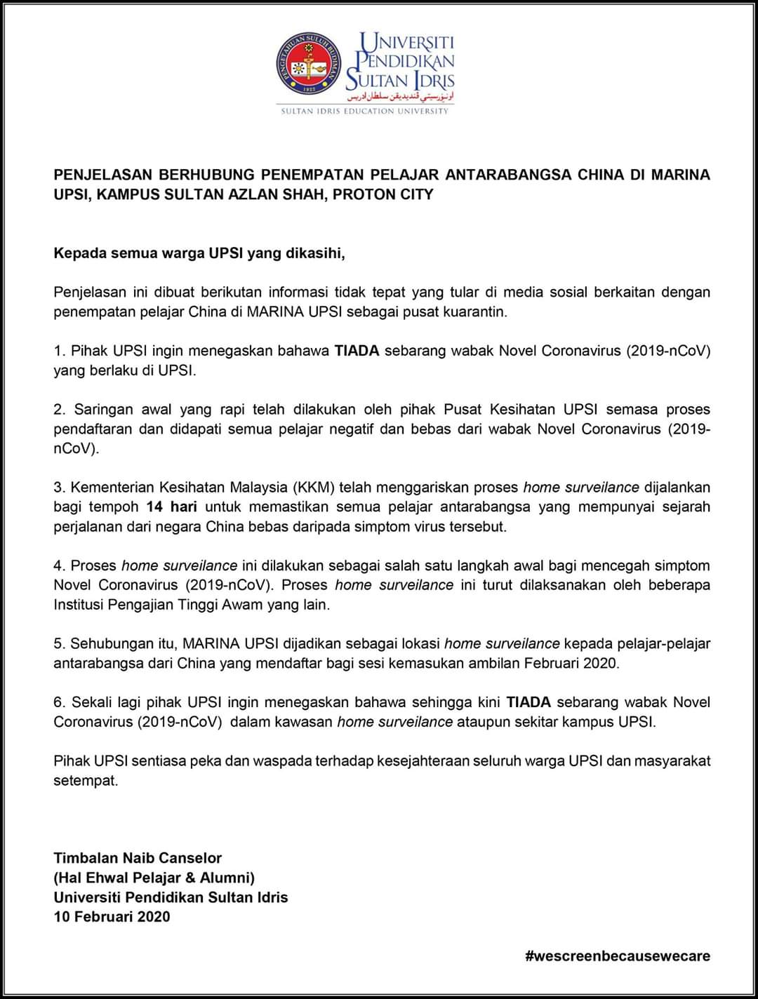 Upsi Malaysia On Twitter Penjelasan Berhubung Penempatan Pelajar Antarabangsa China Di Marina Upsi Kampus Sultan Azlan Shah Proton City Cemerlangbersama Upsibest Upsimalaysia Upsino1pendidikan Upsino1education Malaysiamembaca