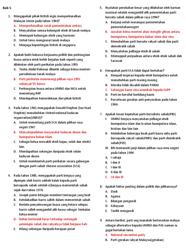 Soalan Dan Jawapan Hubungan Etnik Kuiz Past Year