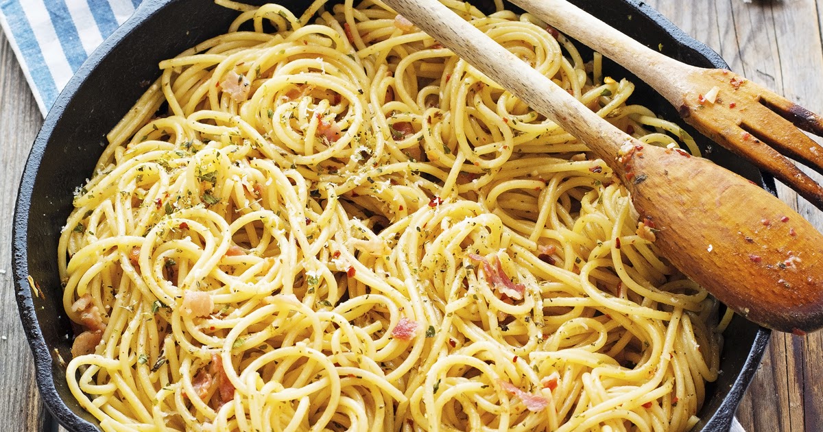 Spaghetti Aglio E Olio With Bacon And Hungarian Sausage Casa Veneracion