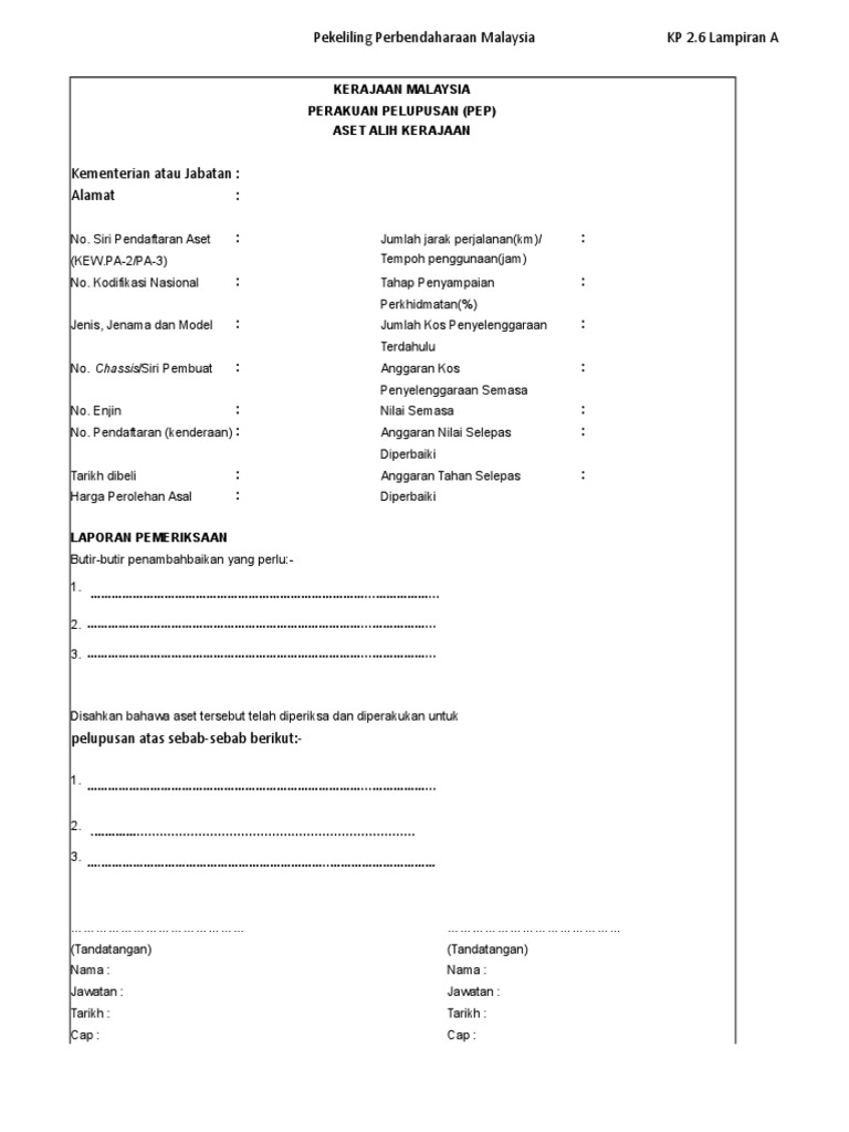 Contoh Lampiran Borang Pelupusan Kew Pa 17