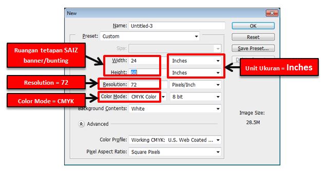 Cara Design Banner Bunting Backdrop Setup Saiz Resolution Color Mode Photoshop Aaz