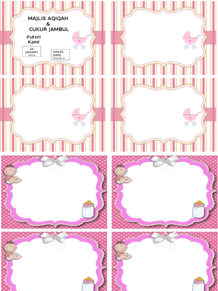 Kad Aqiqah Murah Cukur Jambul Kesyukuran House Warming Bersunat Sticker Dan Berendoi Pening Utk Menempah Kad Jemputan Majlis Hari Jadi Anak Bolehlah Menempah Dengan Saya Di 0172988630 Email Saya At Mawar Dieyana Yahoo Com