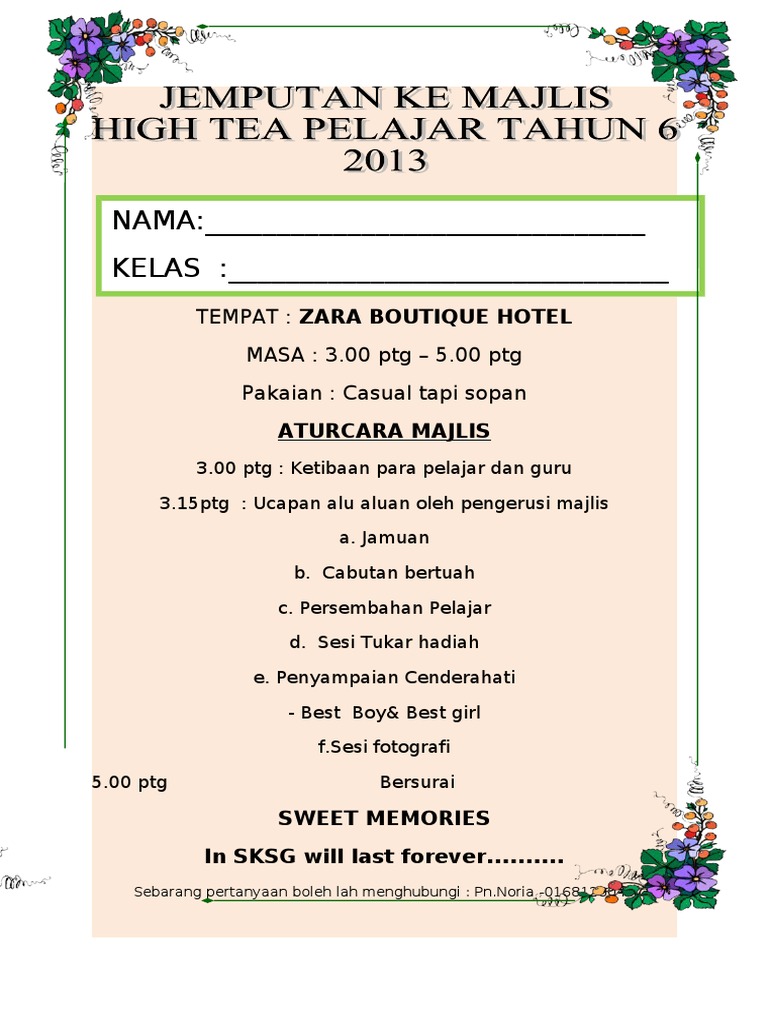 Kad Jemputan Majlis Hi Tea Skusj 12 Cikgu Ayu Dot My