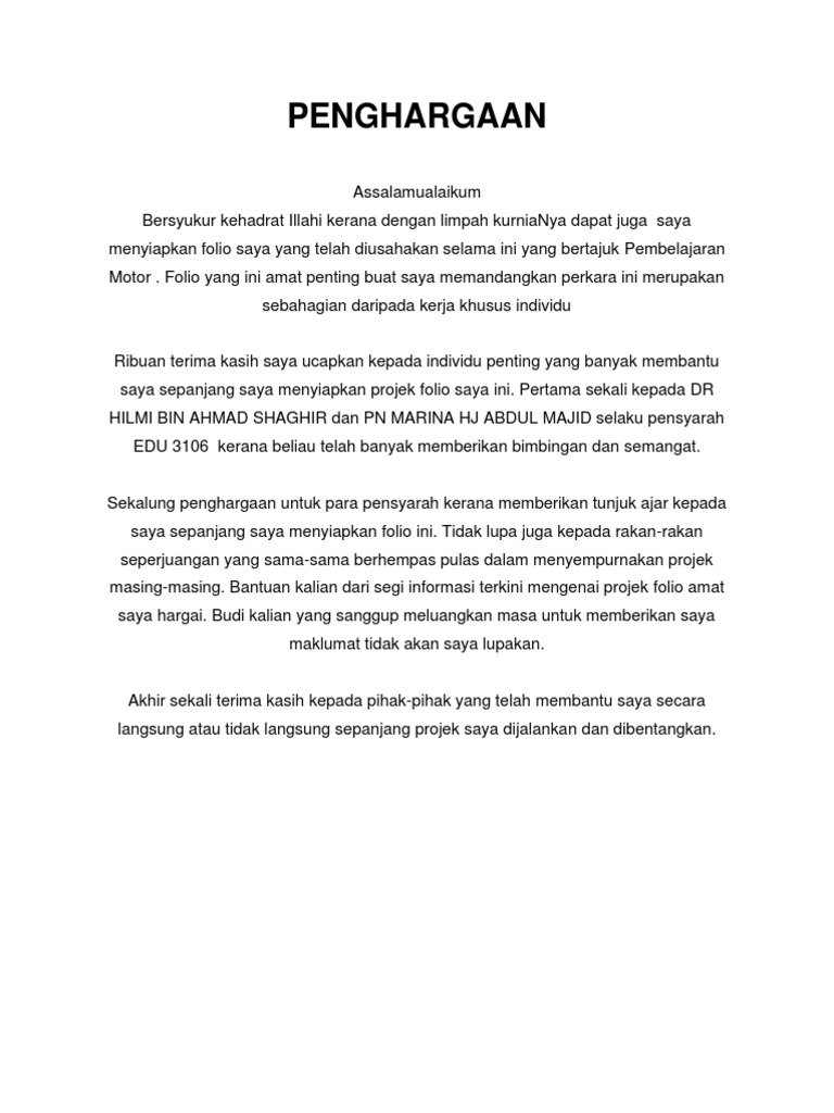 Contoh Folio 1 Penghargaan Syukur Alhamdulillah Kepada Allah S W T Kerana Dengan Berkat Dan Keizinan Dari Nya Maka Saya Telah Dapat Menyiapkan Tugasan Course Hero