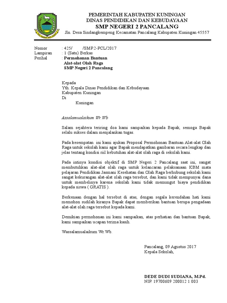 Contoh Surat Permohonan Bantuan Alat Olahraga Kumpulan Surat Penting