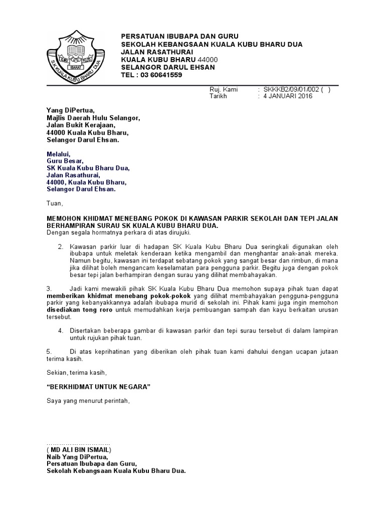 Contoh Surat Rasmi Permohonan Tebang Pokok