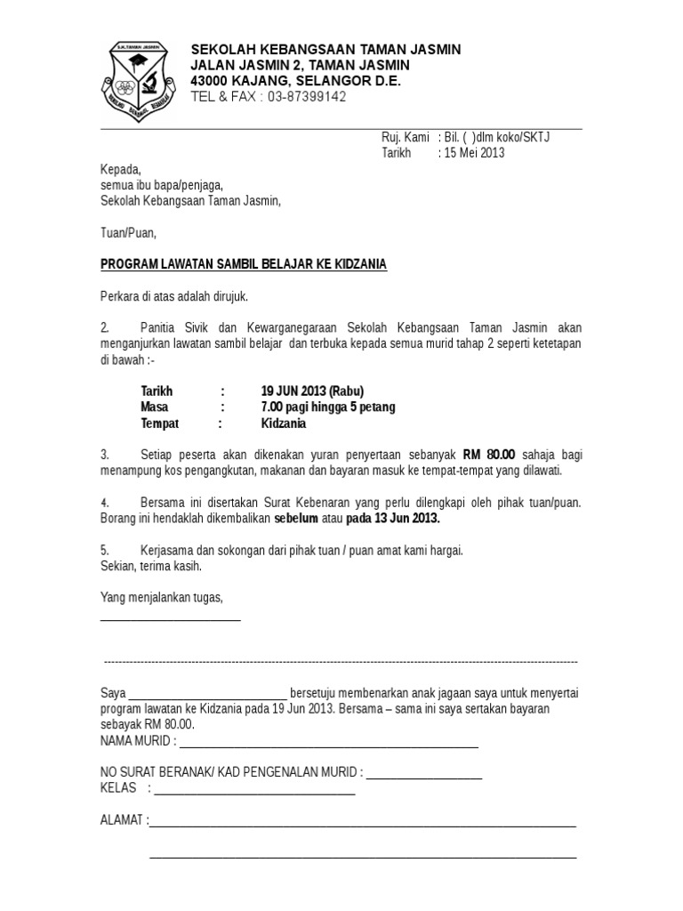 Surat Makluman Lawatan Sambil Belajar Sek Ren Agama Integrasi Taman Keramat Facebook