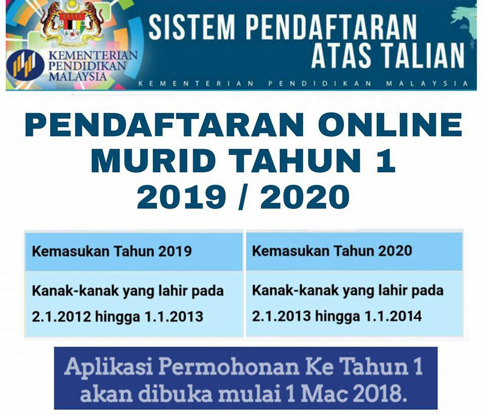 Permohonan Pendaftaran Tahun 1 2019 2020 Online Blog Informasi