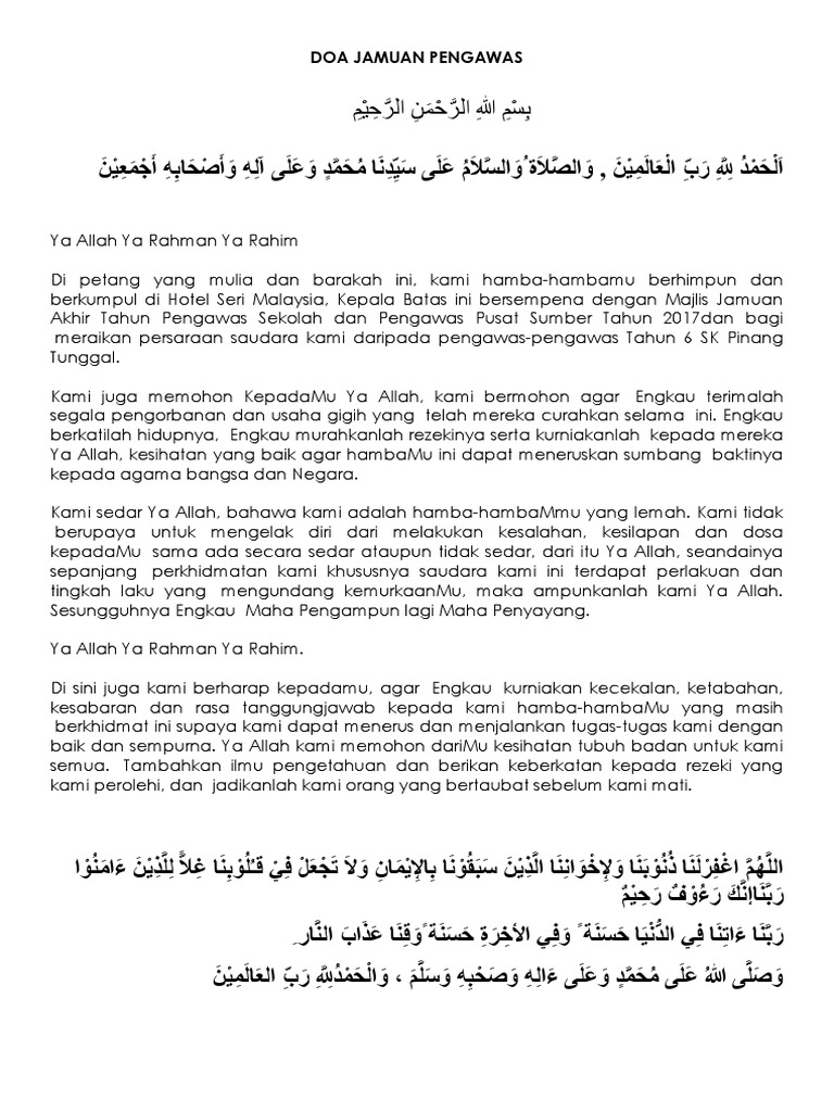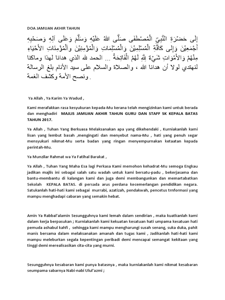 Doa Jamuan Akhir Tahun 6 2016 Docx Documents